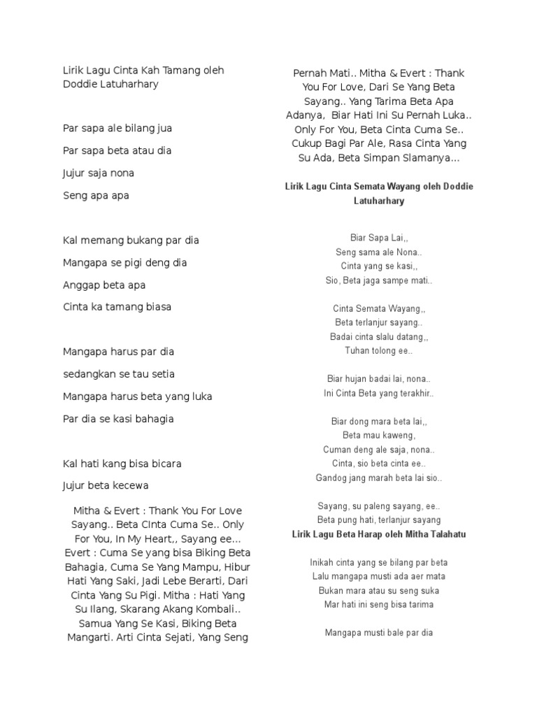 Lirik Lagu Cinta Kah Tamang Oleh Doddie Latuharhary Pdf