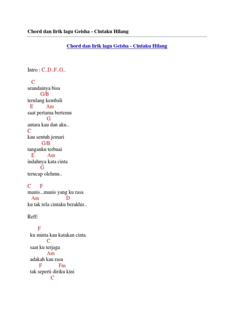 Chord ipank - cinta hilang. Request Chord Services Organizes Chords Collection. Top 100 Chord Bulanan - Malay Gitar Kord Tab Chords Easy Chord Lyrics. C Bm C G D C Bm malam ini.