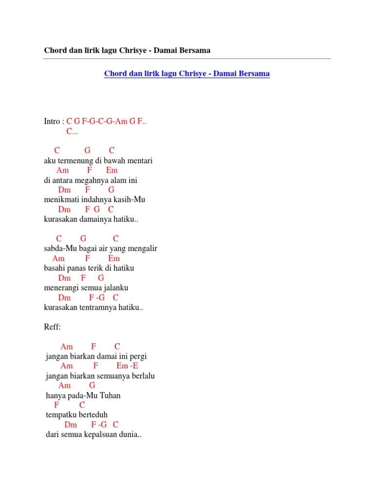 Chord Kala Ku Cari Damai G Kgdll Com