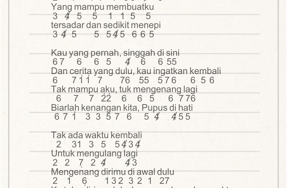 F G Em Am Dm G C. C Em Kau yang pernah Am - G singgah disini F Em dan cerita yang dulu Dm G kau ingatkan kembali C Em Tak mampu aku Am - G tuk mengenang lagi F G biarlah kenangan kita C pupus di hati. Cm Ab Bb Eb Fm Abm Gm Chords for NISA HANIFA - MENEPI REGGAE SKA VERSION NGATMOMBILUNG with song key BPM capo transposer play along with.
