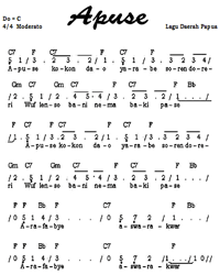 Not Angka Lagu Apuse Papua. Juga ada lirik lagu Apuse dan terjemahannya. Apuse Kokon Dao Yarabe Soren Doreri.
