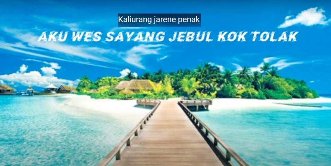 Dm G pinggir jurang kaline butek C kowe tak sayang matamu picek. Aku wes sayang jebul. Aku tok tolak tetep iso ngguyu.