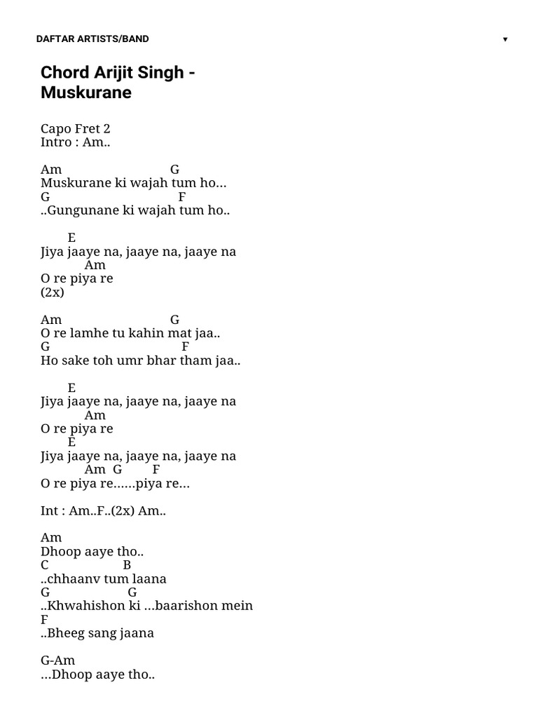 Chord Arijit Singh Muskurane Kunci Gitar Dangdut Lirik Lagu Chordvisa Pdf