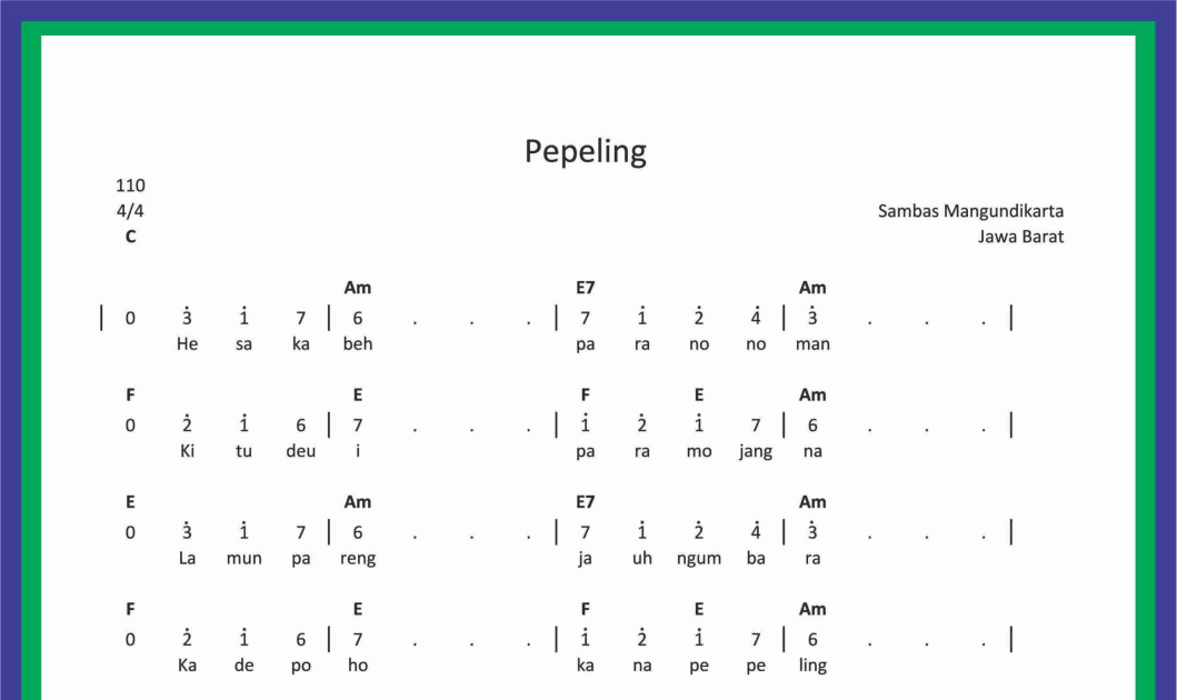 Pepeling adalah judul lagu dari daerah Ja. Chord Kunci Gitar Doel Sumbang - Pepeling. Baiklah kita lihat not angka lagu tersebut.