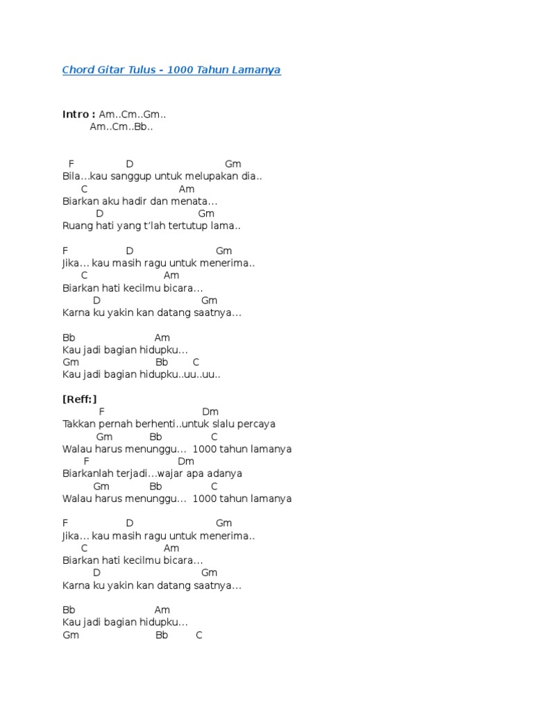 Kunci Gitar Chord 1000 Tahun Lamanya Tulus Chord Dasar Mudah Chord Kunci Gitar Chordfylan Com