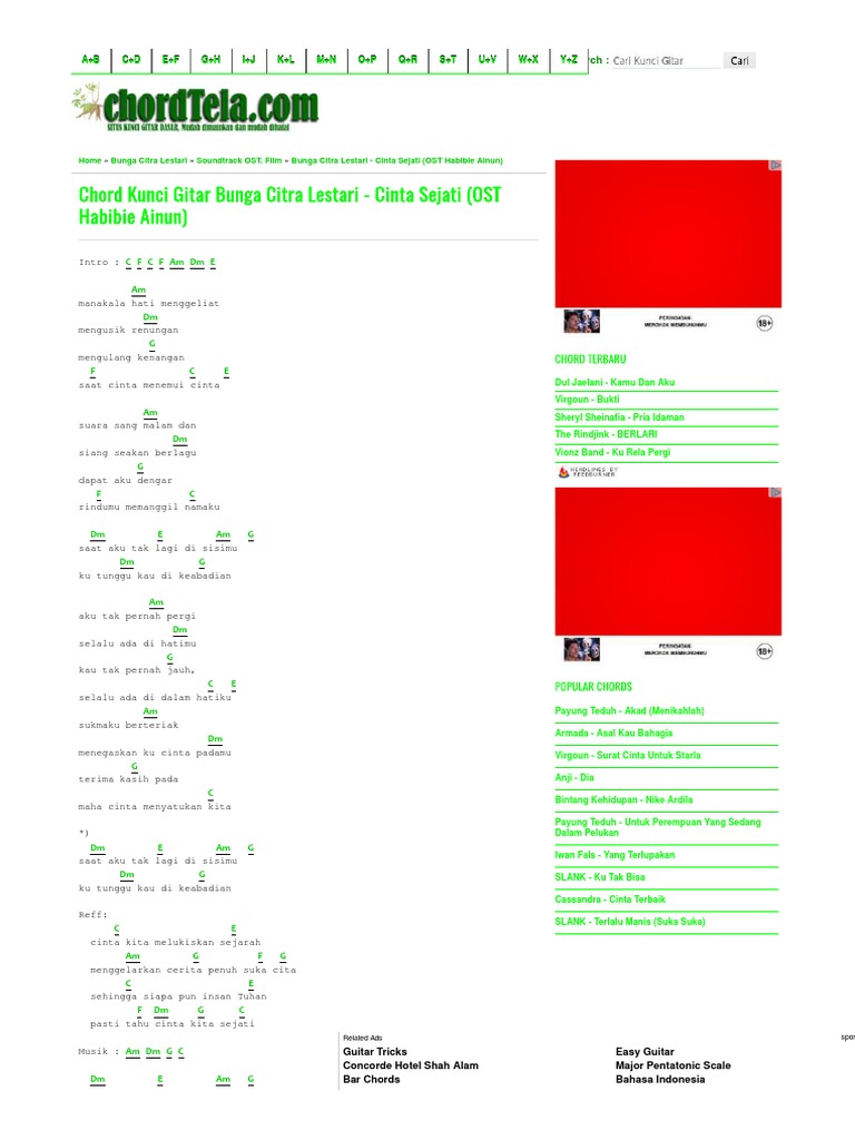 Kunci Gitar Bunga Citra Lestari Cinta Sejati Ost Habibie Ainun Chord Dasar Kunci Gitar Lirik Lagu C Pdf
