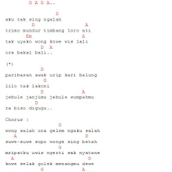 Dm Kabeh iki kahanan G Am Ra iso neruske katresnan. Am Em kowe sing tak tresno. G F aku ora tegel Em Dm G nek kowe wes nangis.