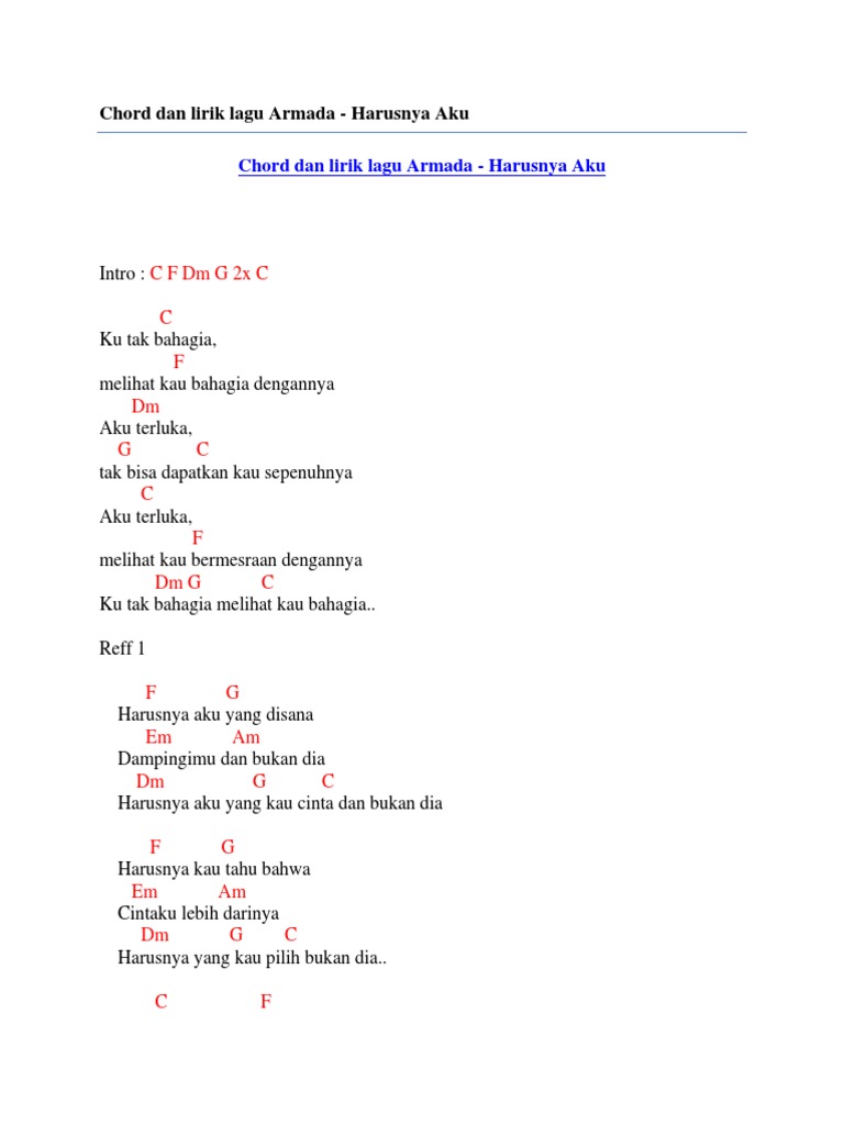 Am Dm Kan aku. A B Harusnya kau tahu bahwa Gm Cm Cintaku lebih darinya Fm B E Harusnya yang kau pilih bukan dia. C Am sekarang kau pergi menjauh Dm G sekarang kau tinggalkan aku.