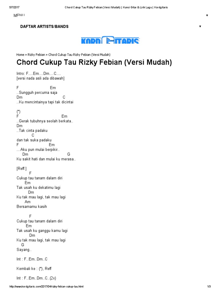 Kunci Gitar Rizky Febian Cukup Tau Chord Dasar Chordindonesia Com